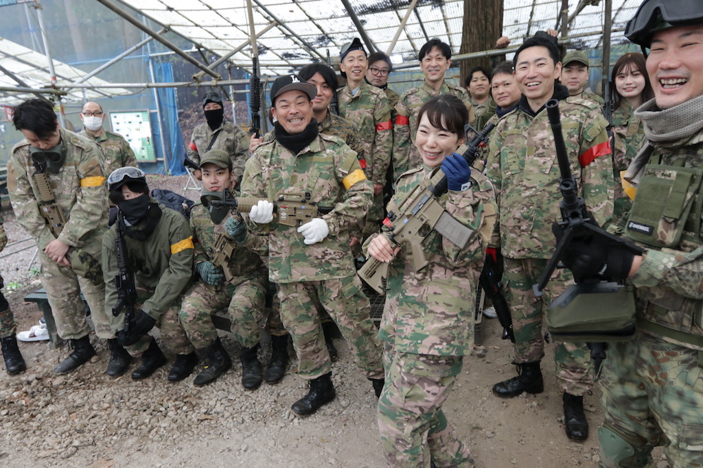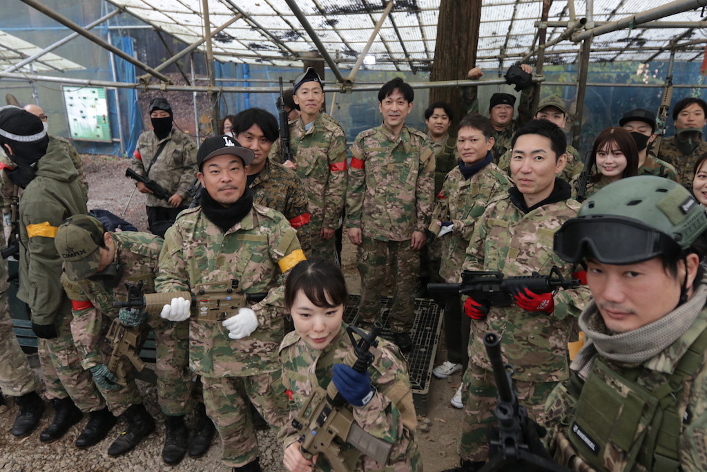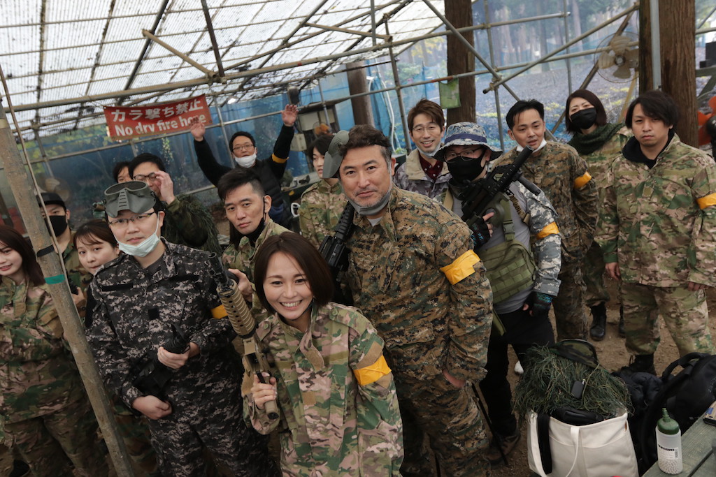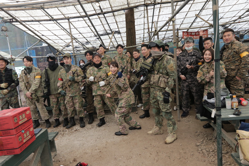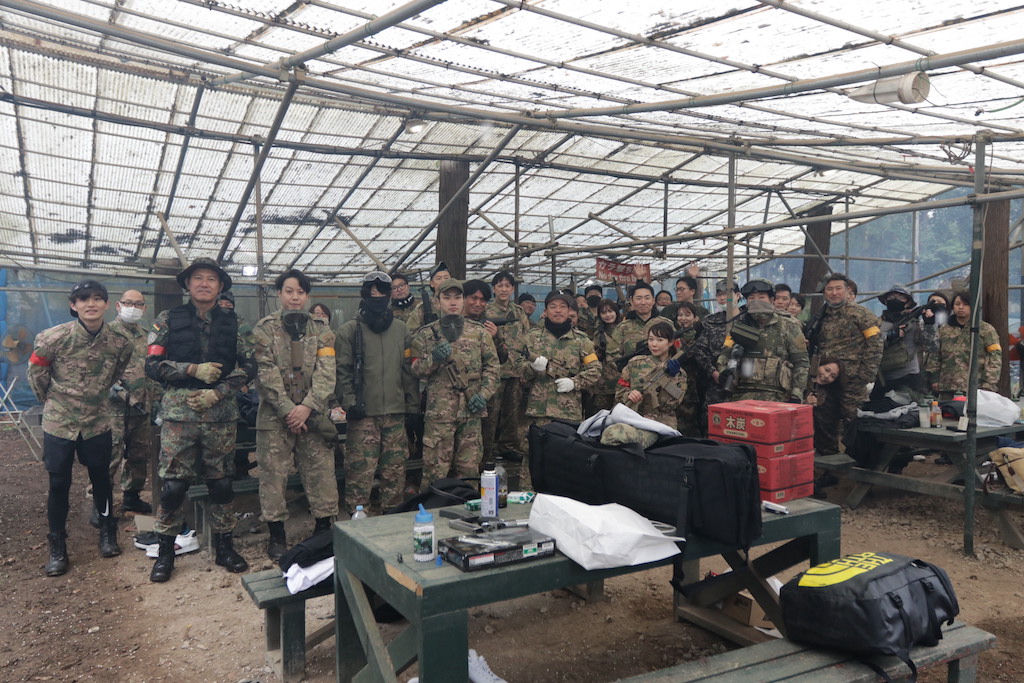 どちらかのサバゲーチームさんかと思いきや、皆さん同じ会社のお仲間さんらしい。しかも、ほぼ全員初サバゲーって💦