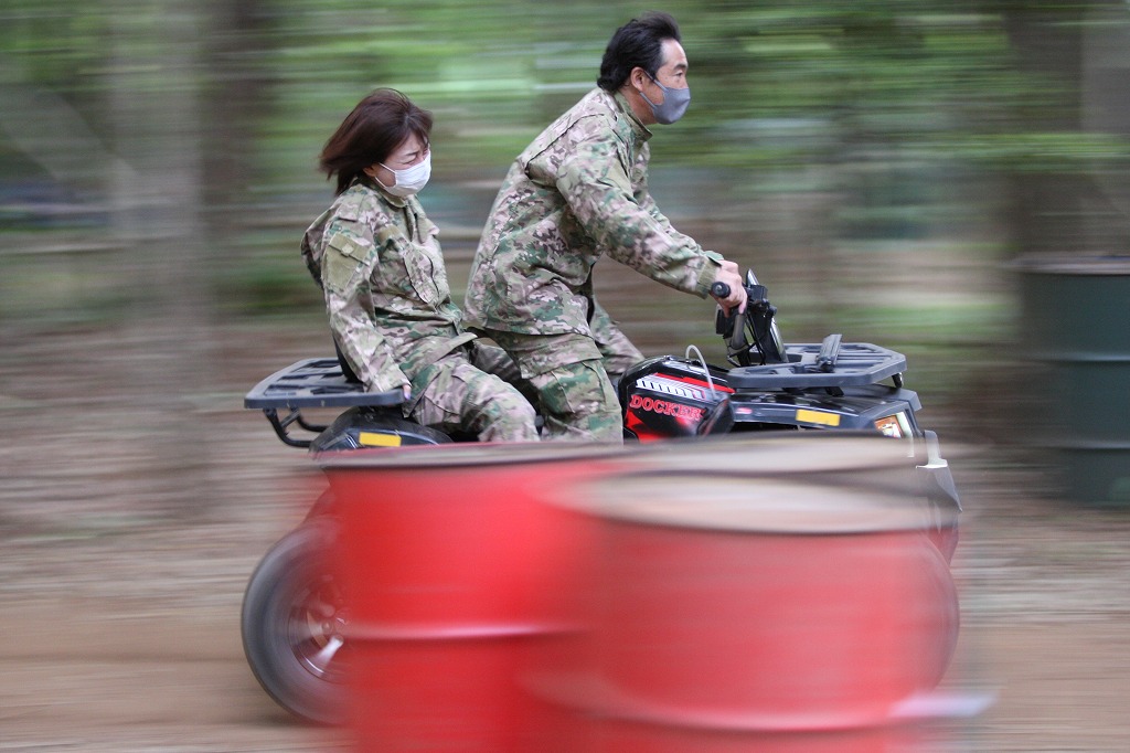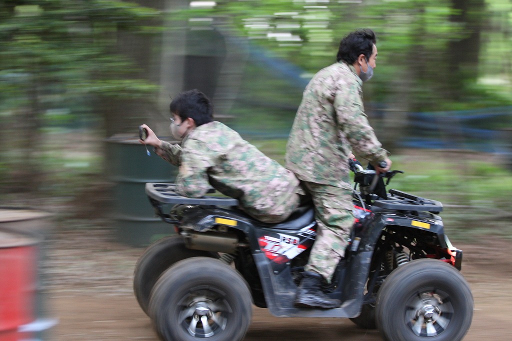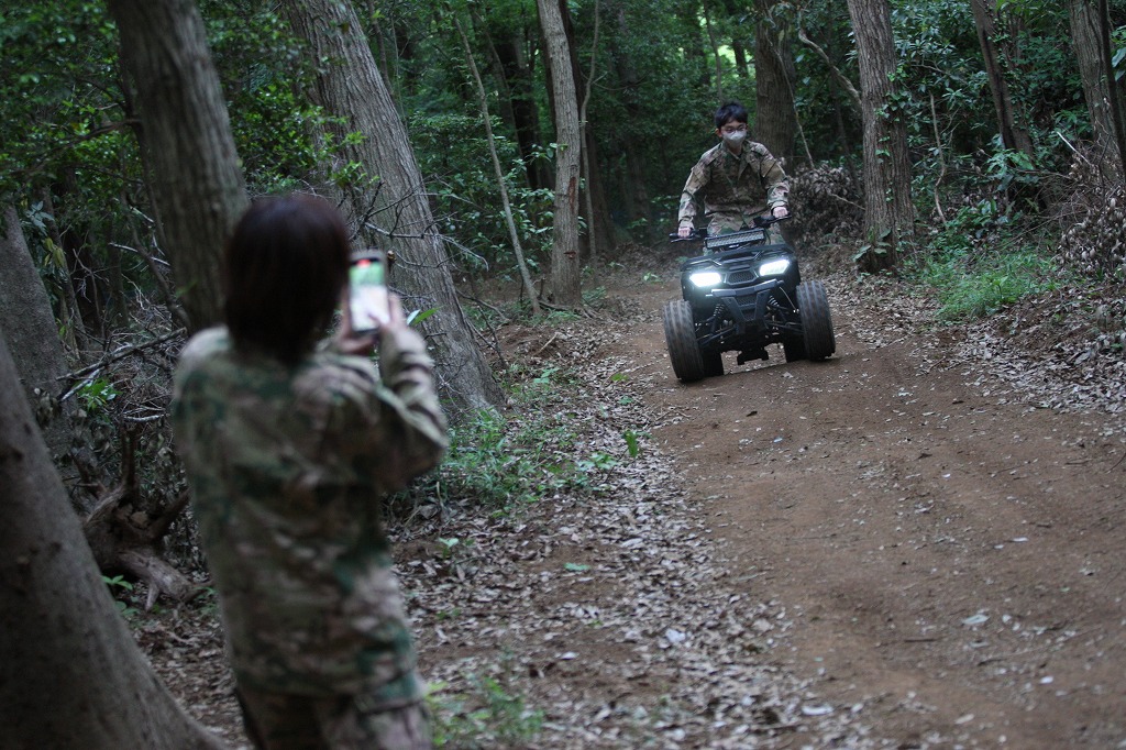 東京バギー村 迷彩服で後ろ向き撮影がとても楽しそう!