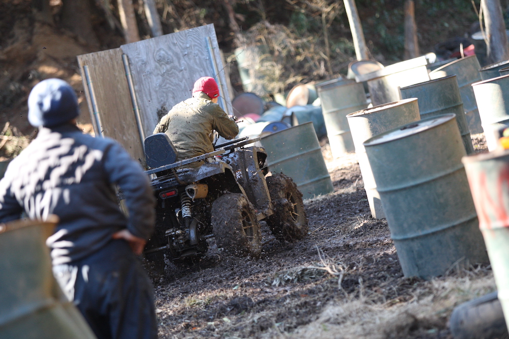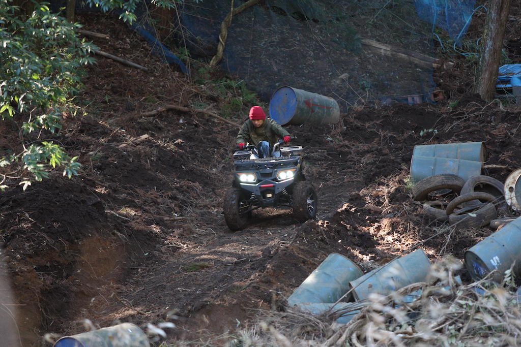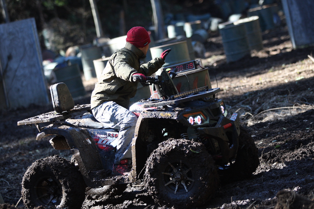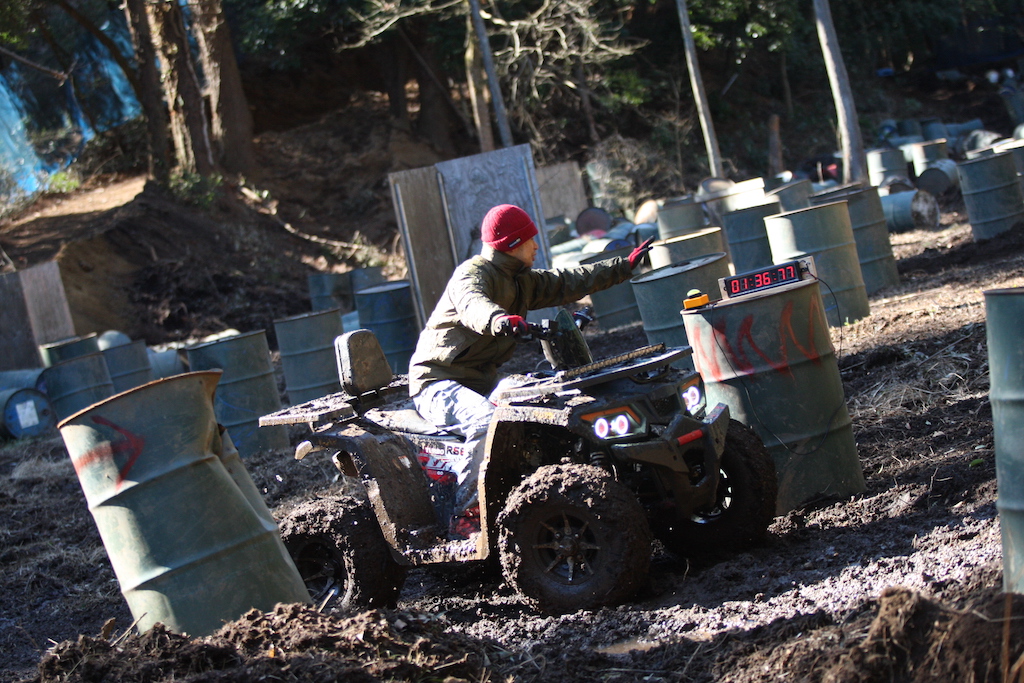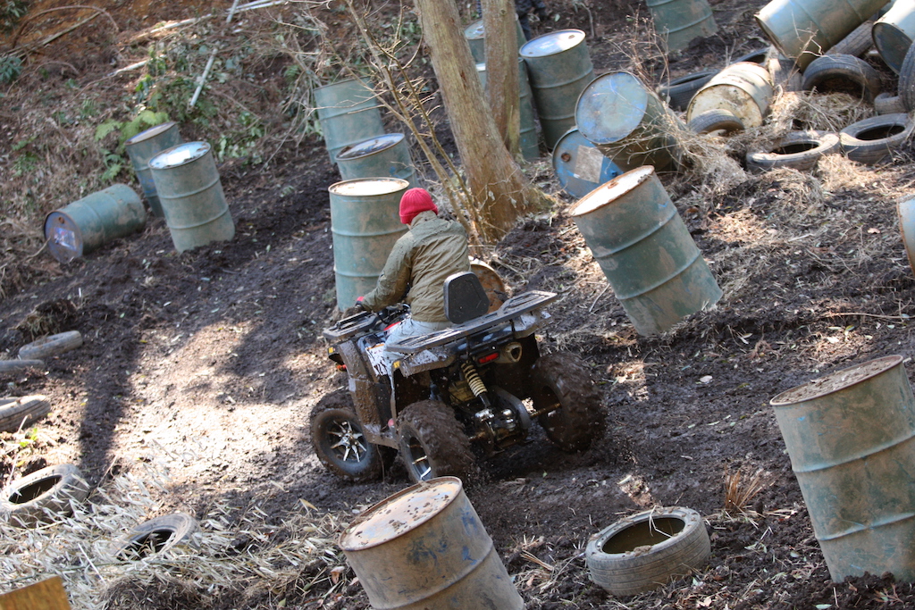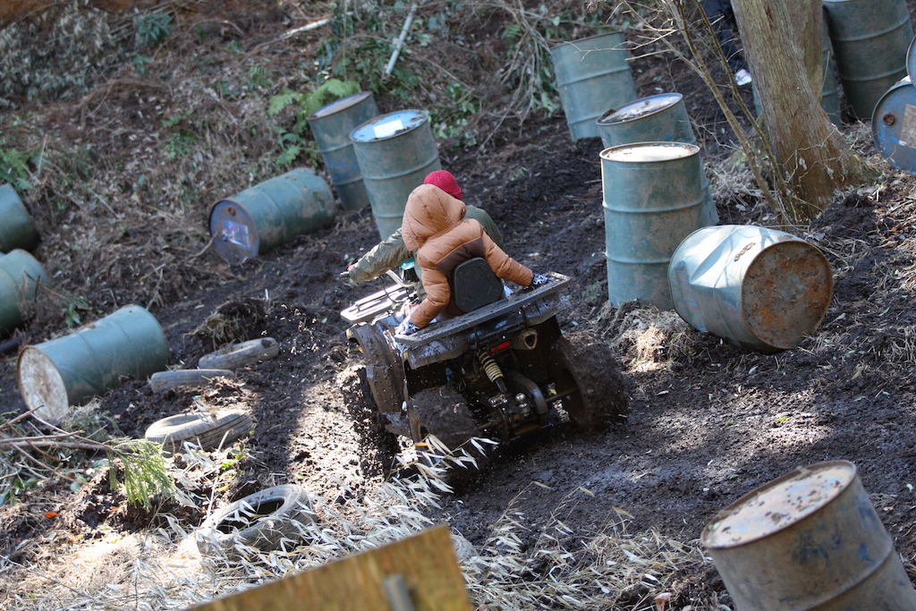 走るだけなら中級者以上で問題なしのヌタヌタスリックコースですが、まずはパパさんが一人で試走することに。