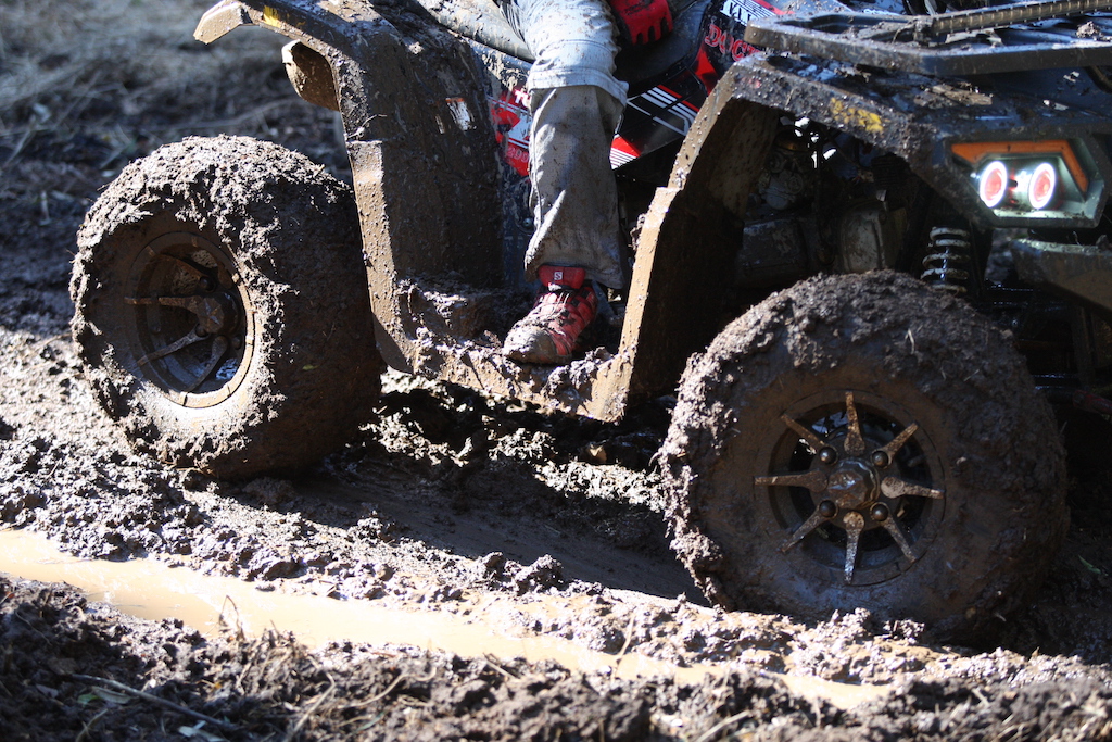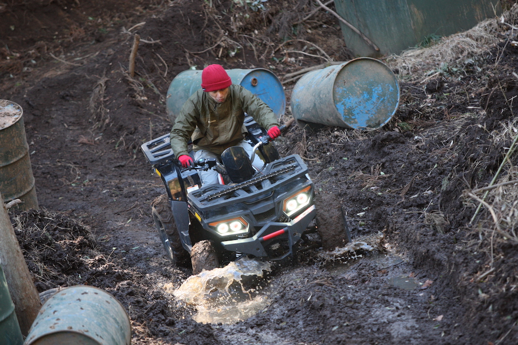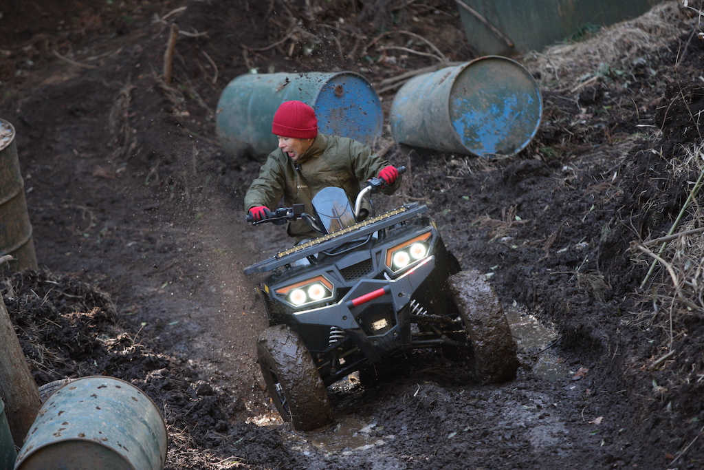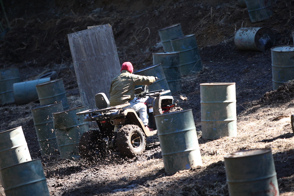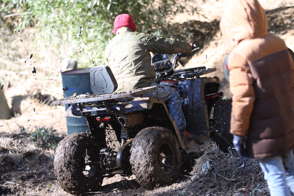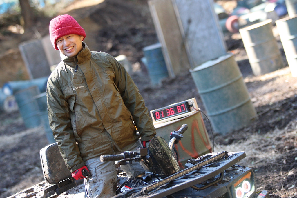 走るだけなら中級者以上で問題なしのヌタヌタスリックコースですが、まずはパパさんが一人で試走することに。