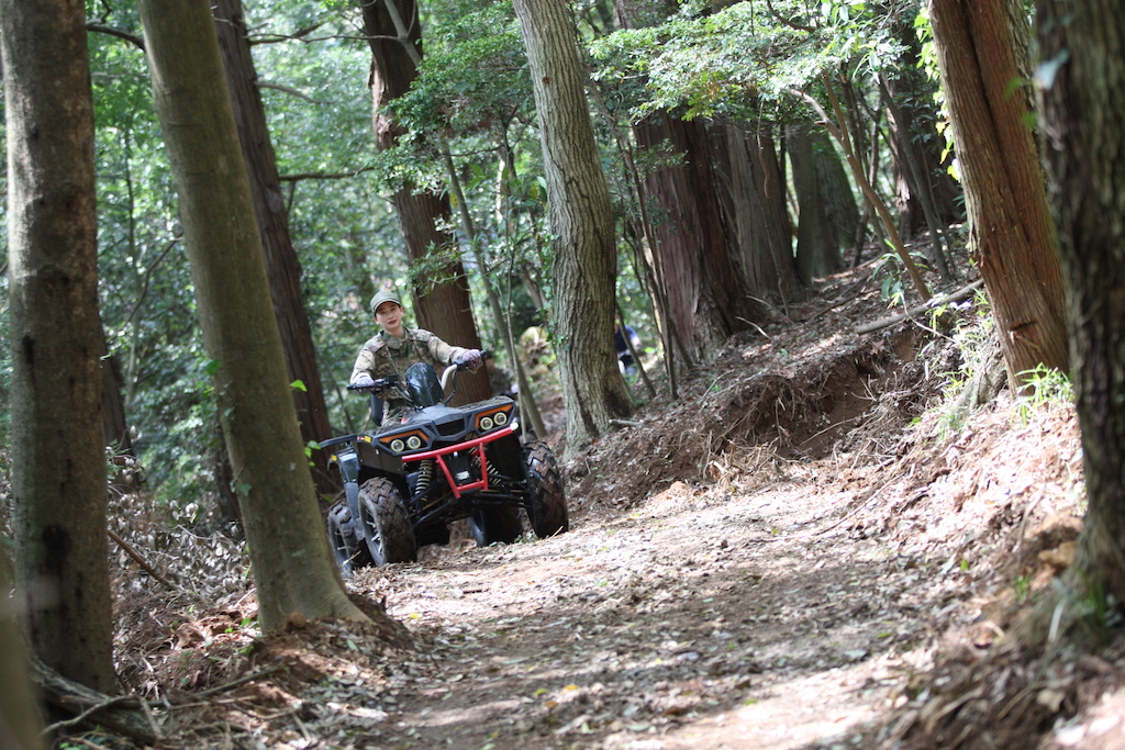 一通り森の中を走ったところで、毎度恒例、ドキドキの二人乗りタイム♬