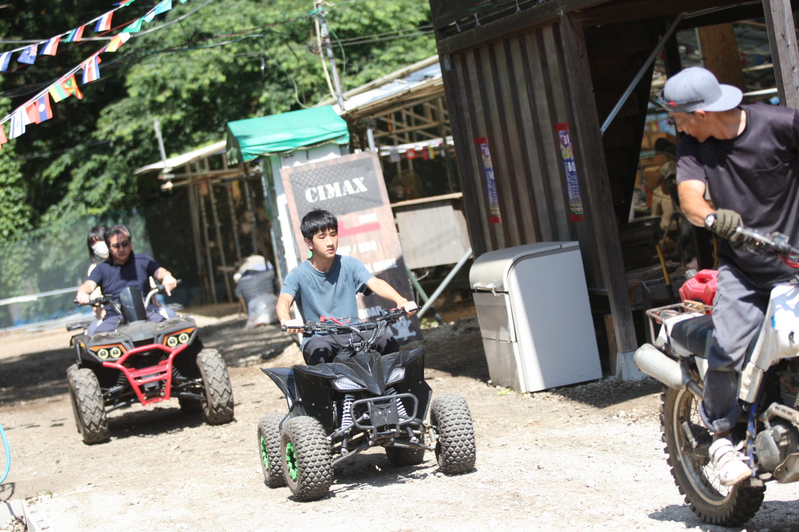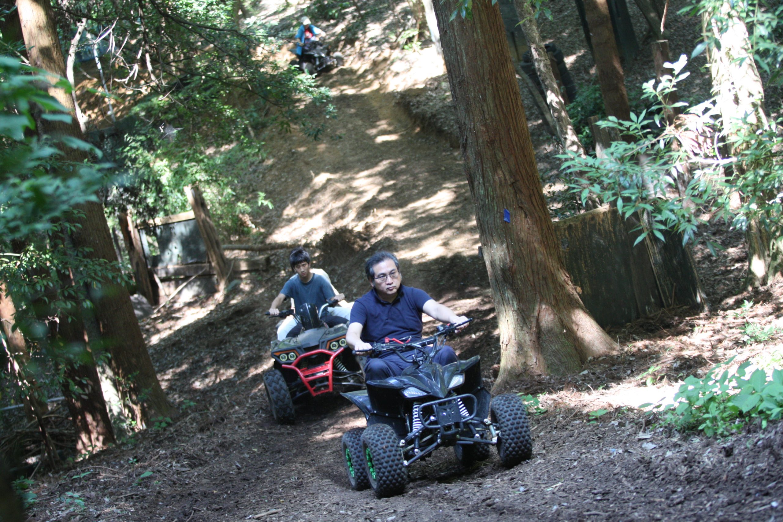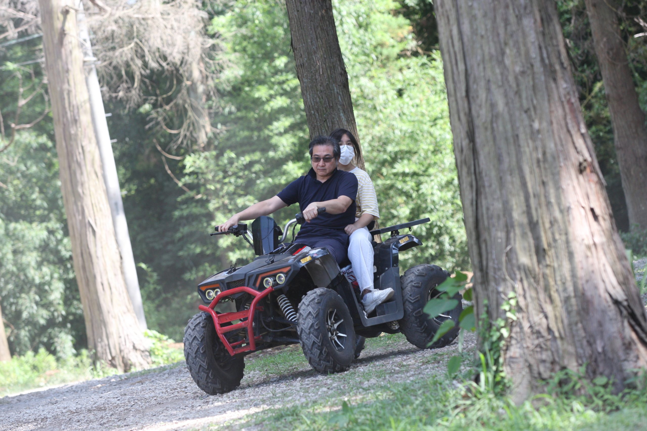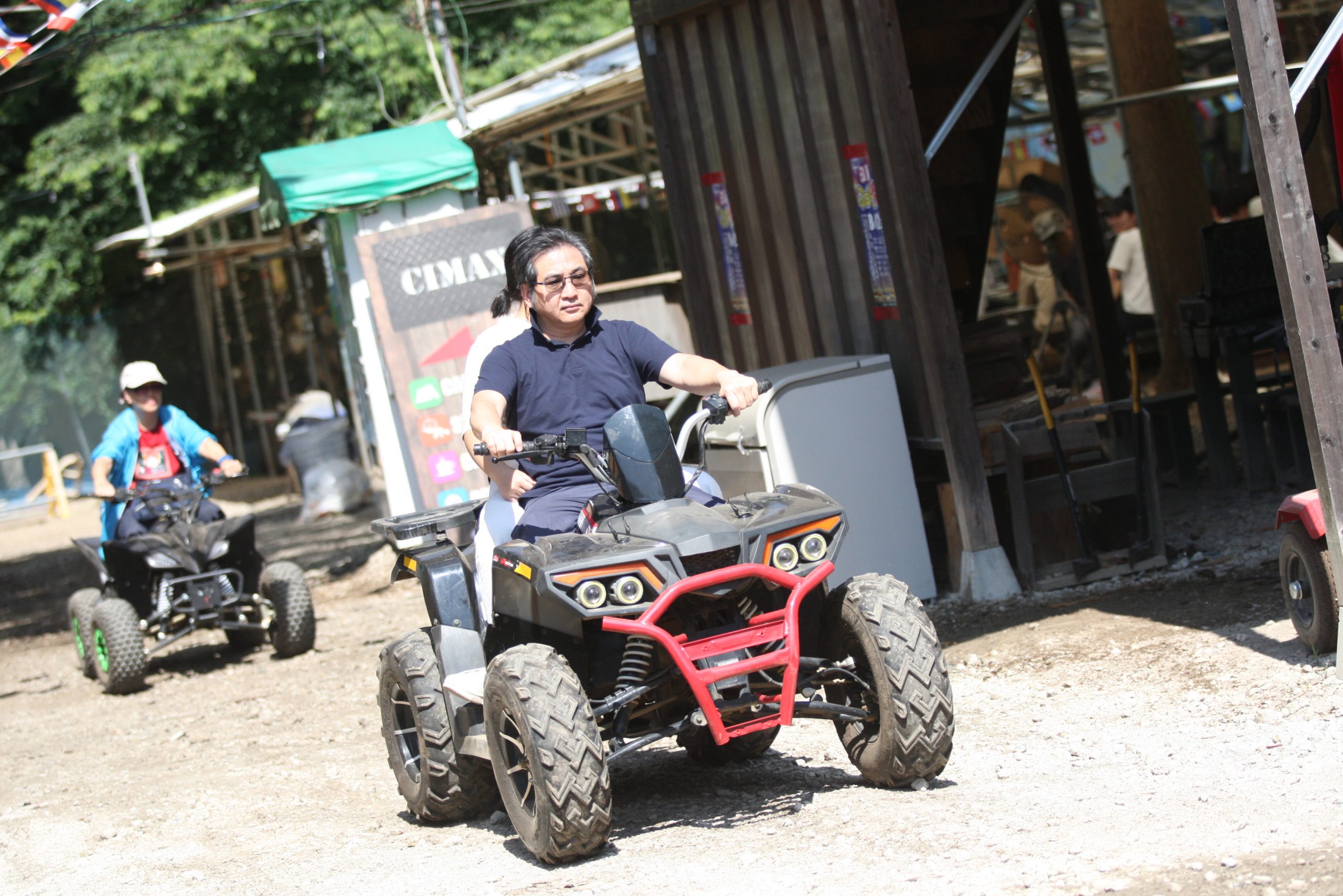 本日は日曜日、昨晩からキャンプの団体さんとか、BBQの団体さんがいらしてて、森はごった返していたのですが、そんな中海外からバギーに乗りたいご一家がご来場♫