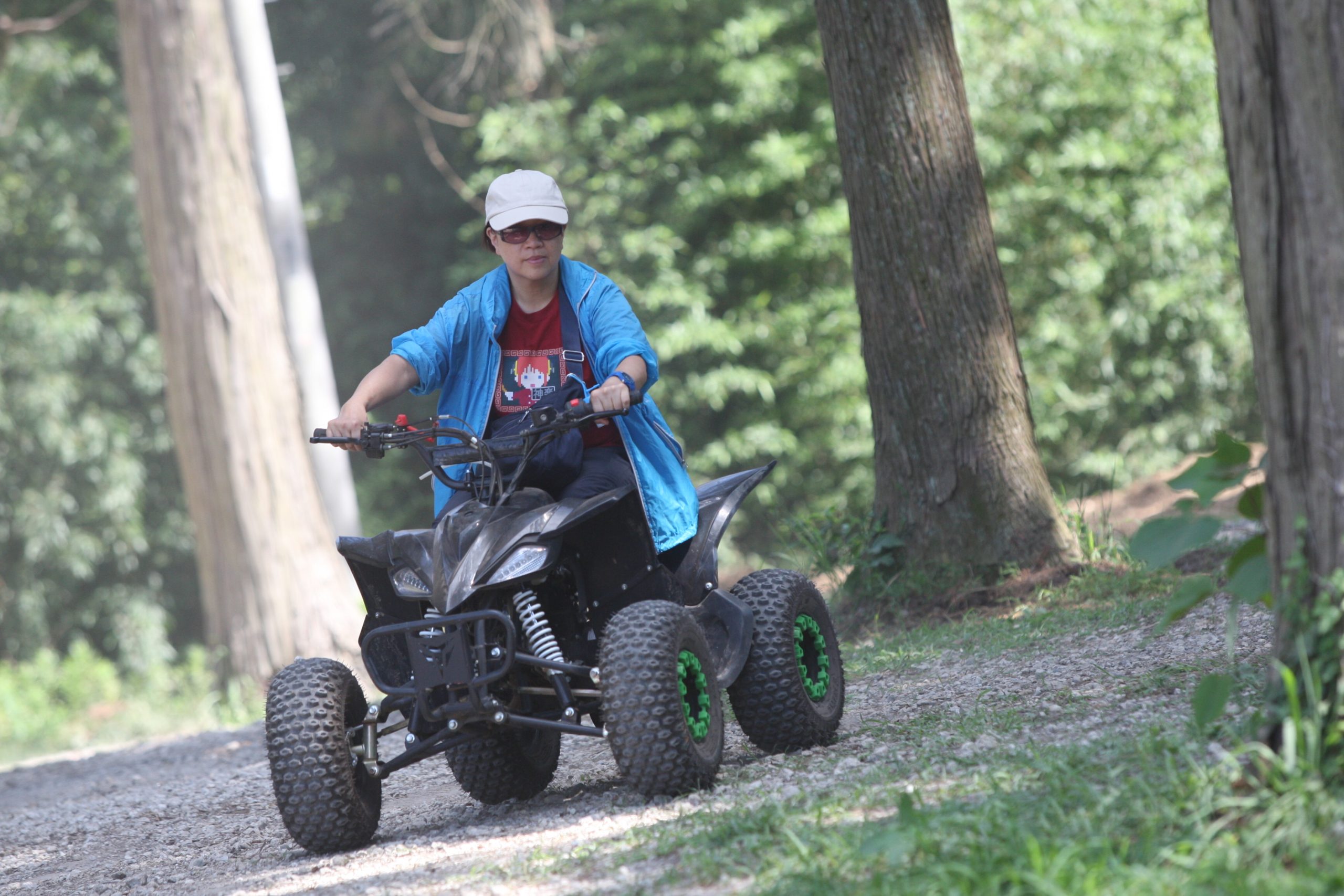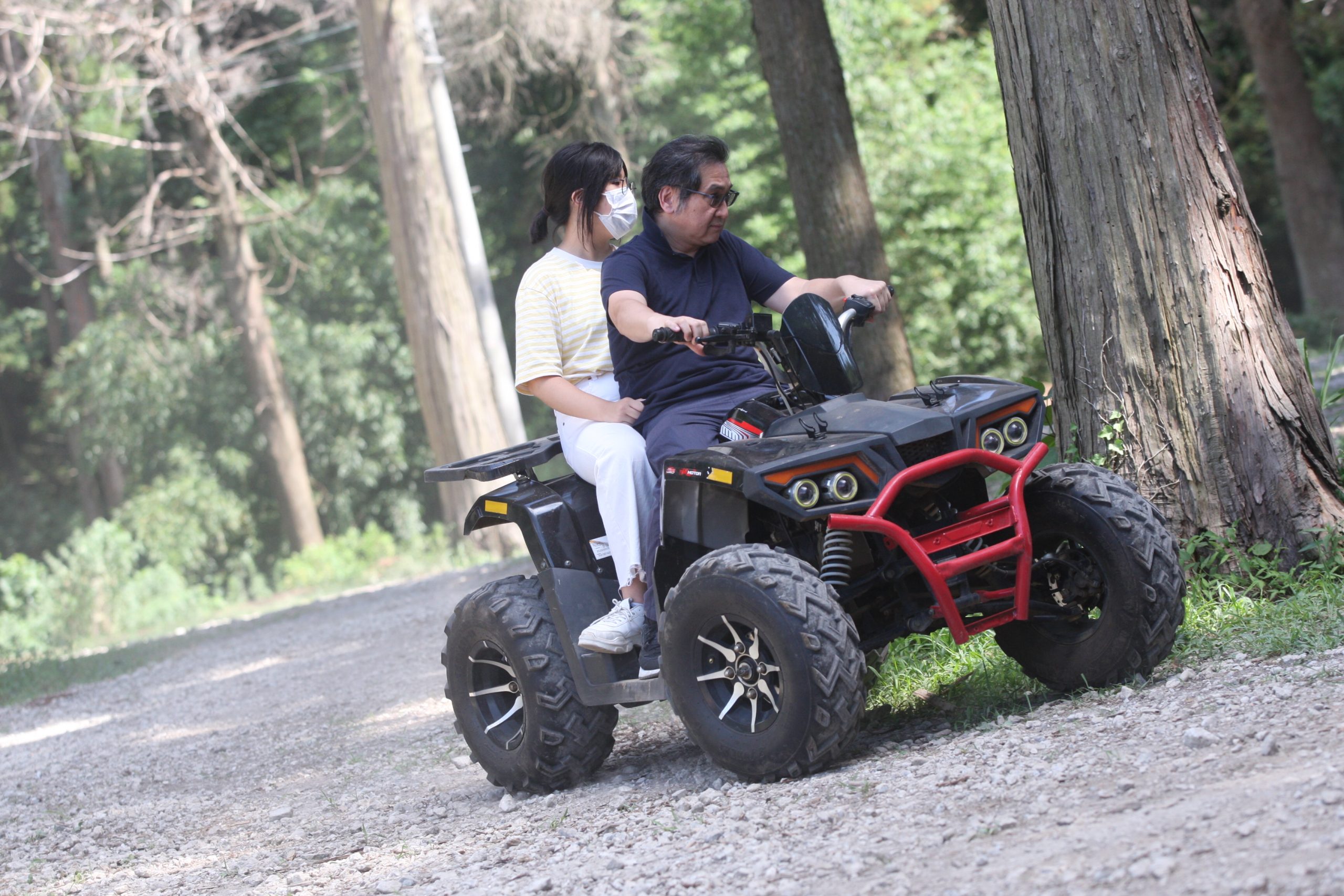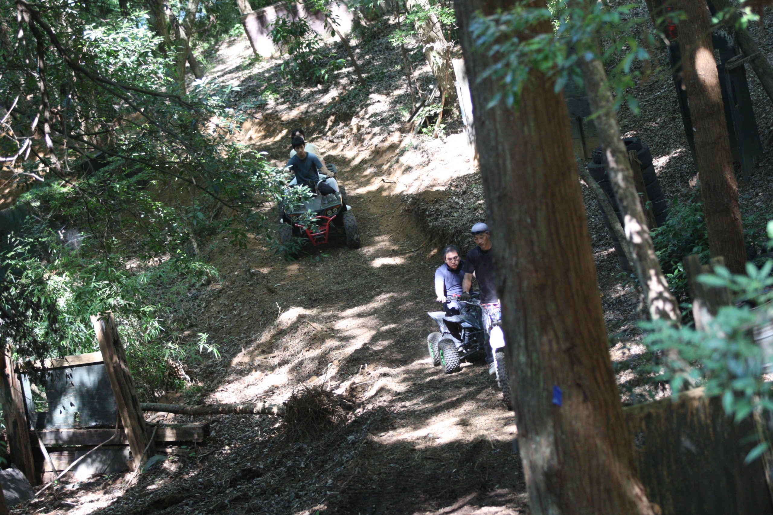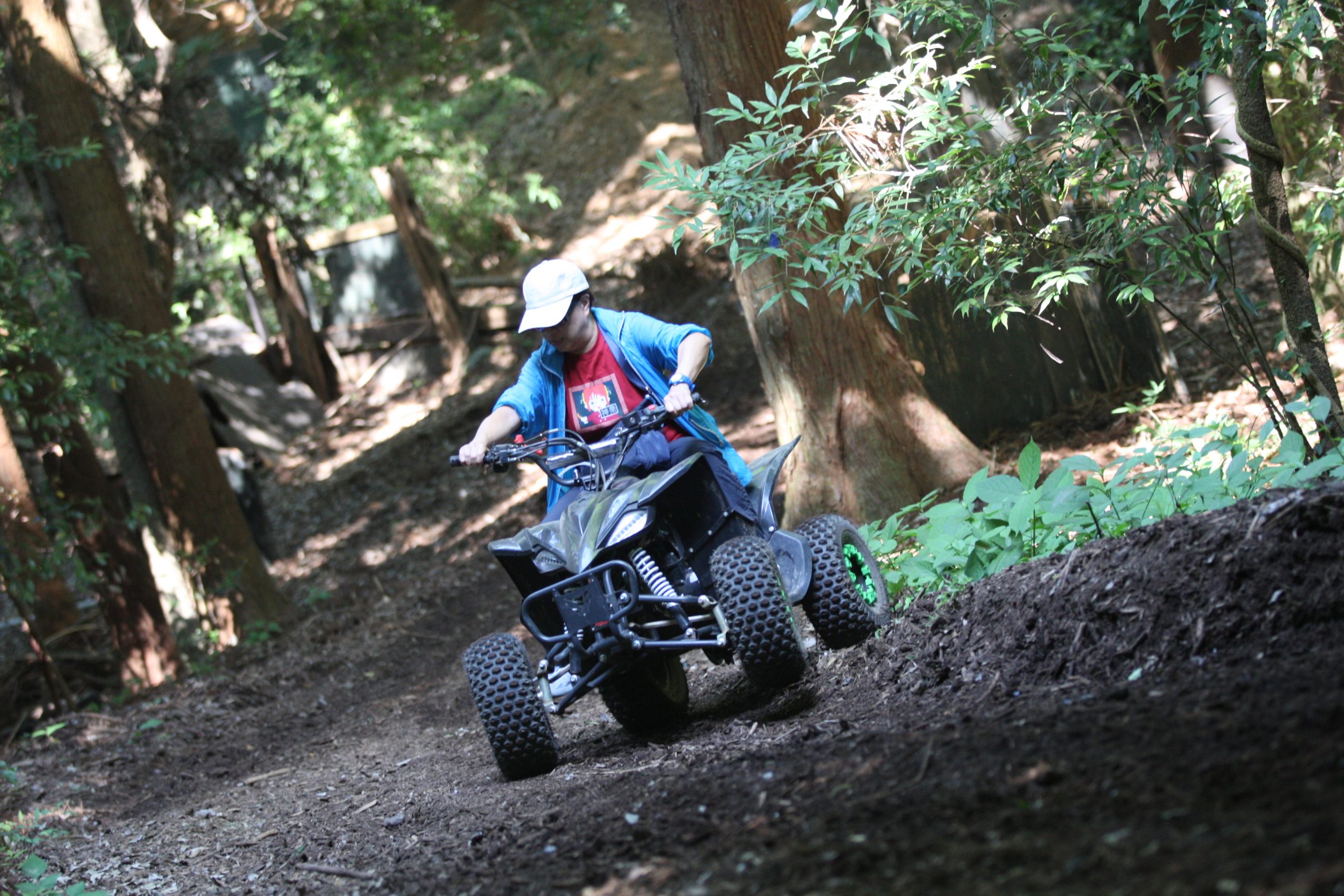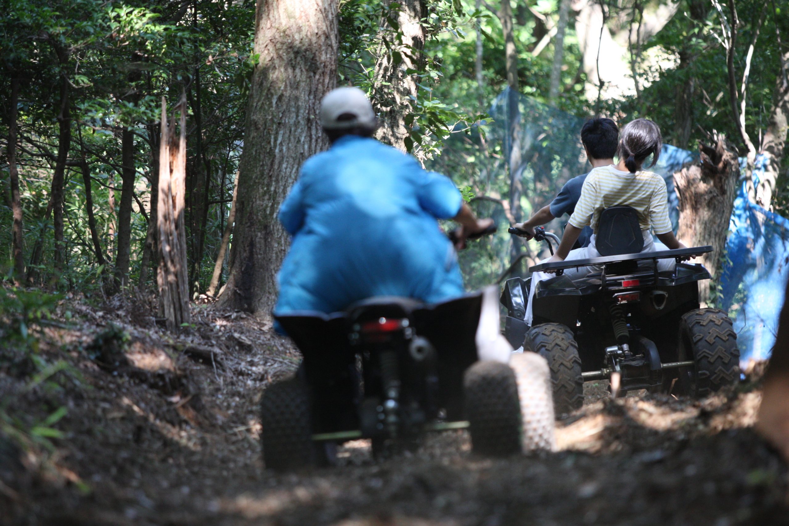 本日は日曜日、昨晩からキャンプの団体さんとか、BBQの団体さんがいらしてて、森はごった返していたのですが、そんな中海外からバギーに乗りたいご一家がご来場♫
