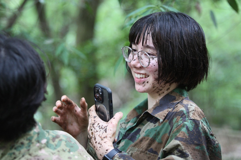 すでに顔に泥が😅