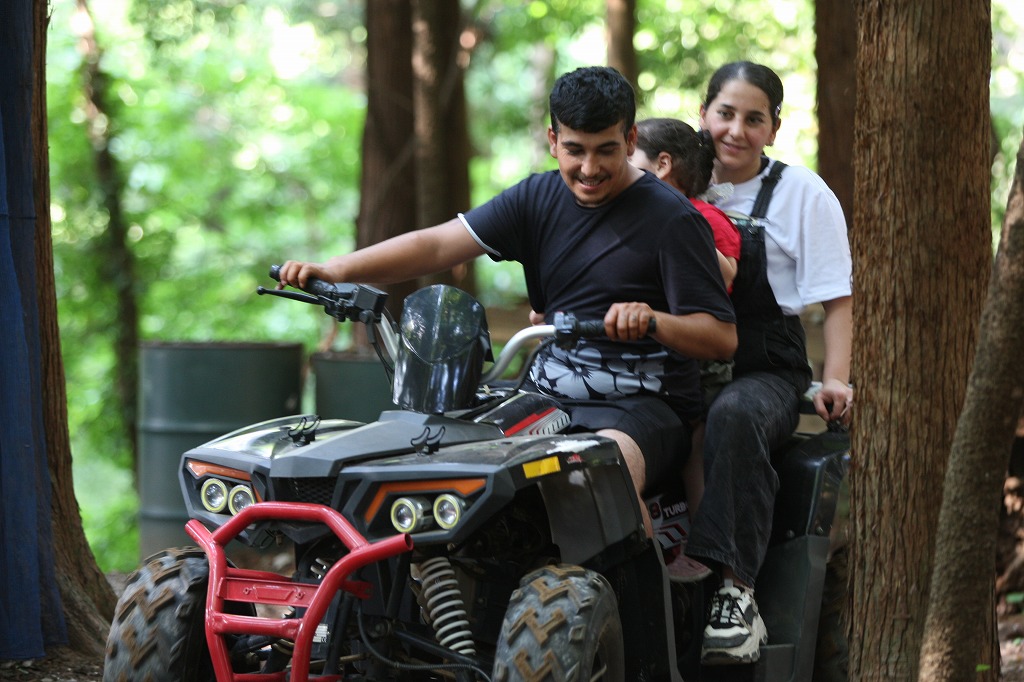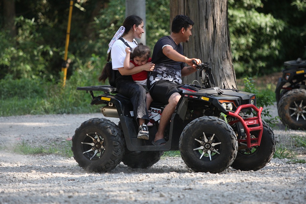 1台のバギーに家族三人で乗ります!