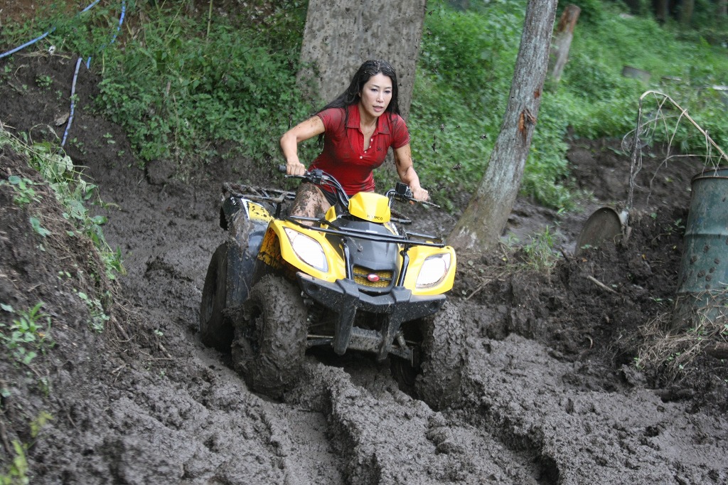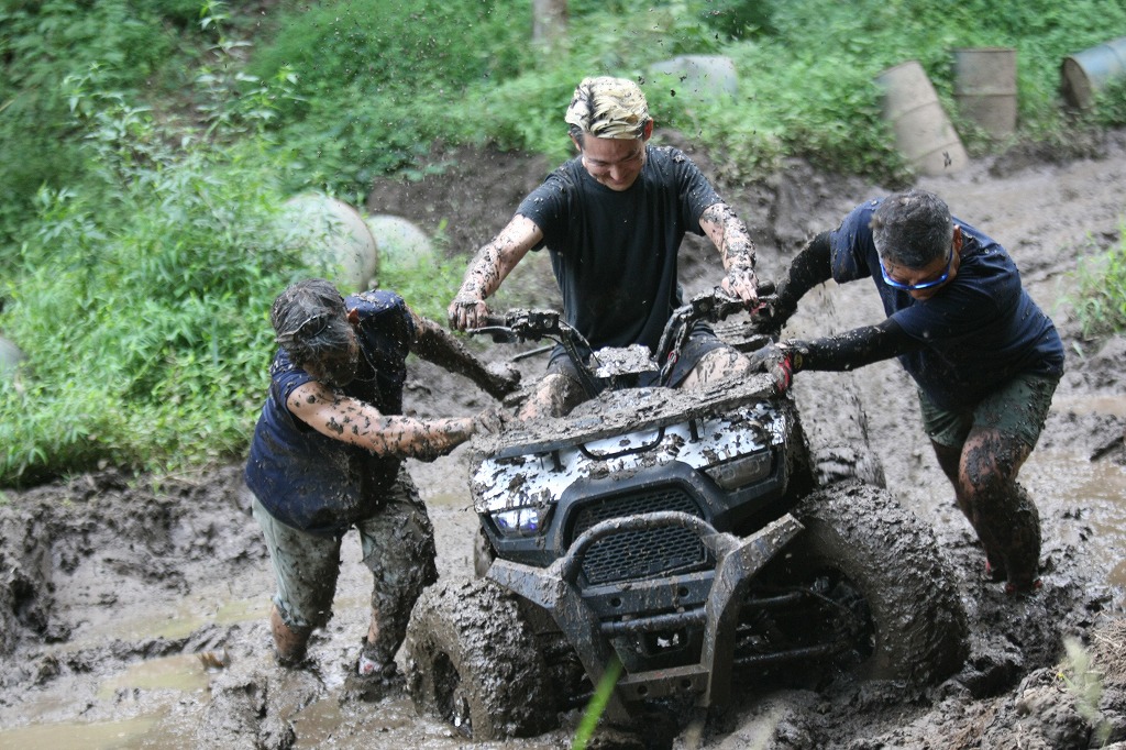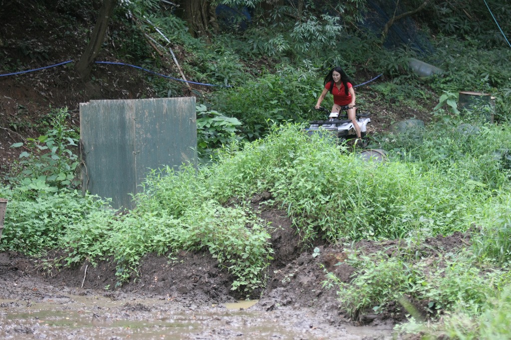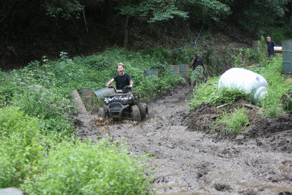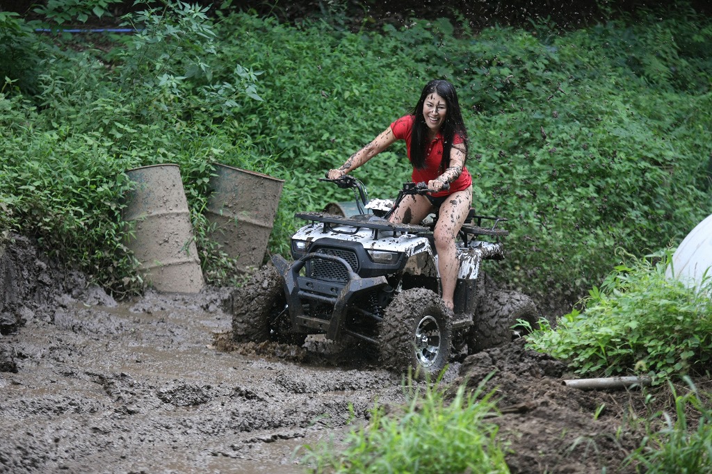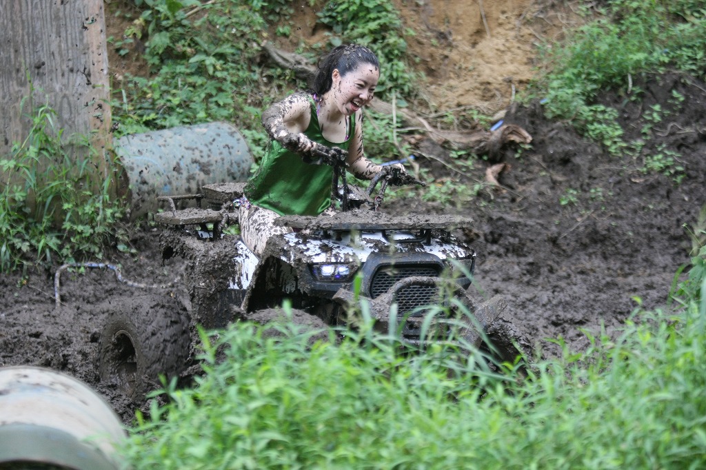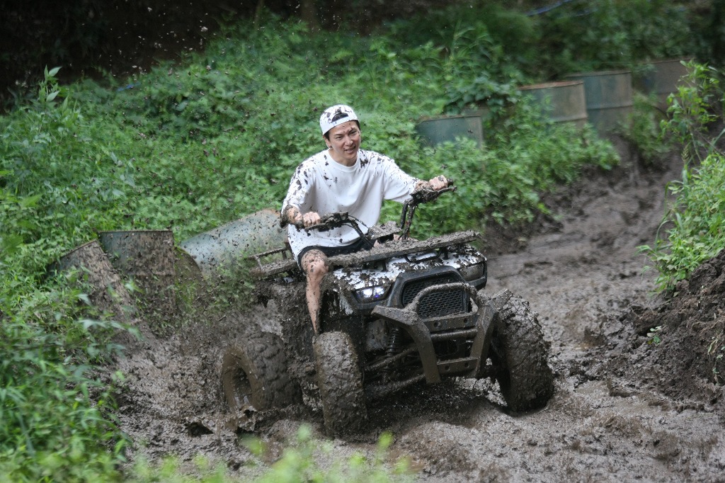 そうそう、KYMCOさんからの要請でKYMCOバギーで泥だらけにも挑戦してもらいましたよ