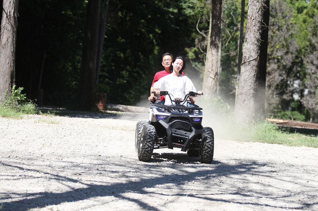 姉妹がそれぞれ運転、ママパパが後ろに乗るスタイルで遊びました!