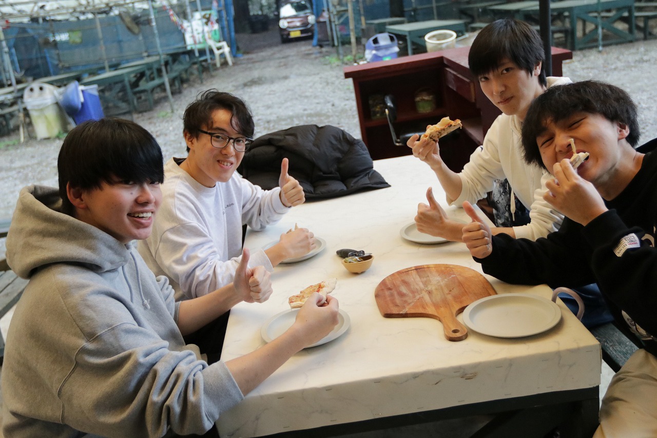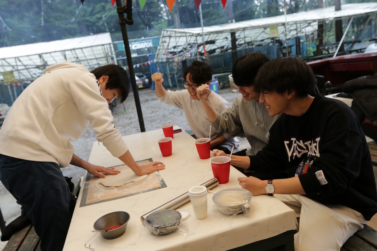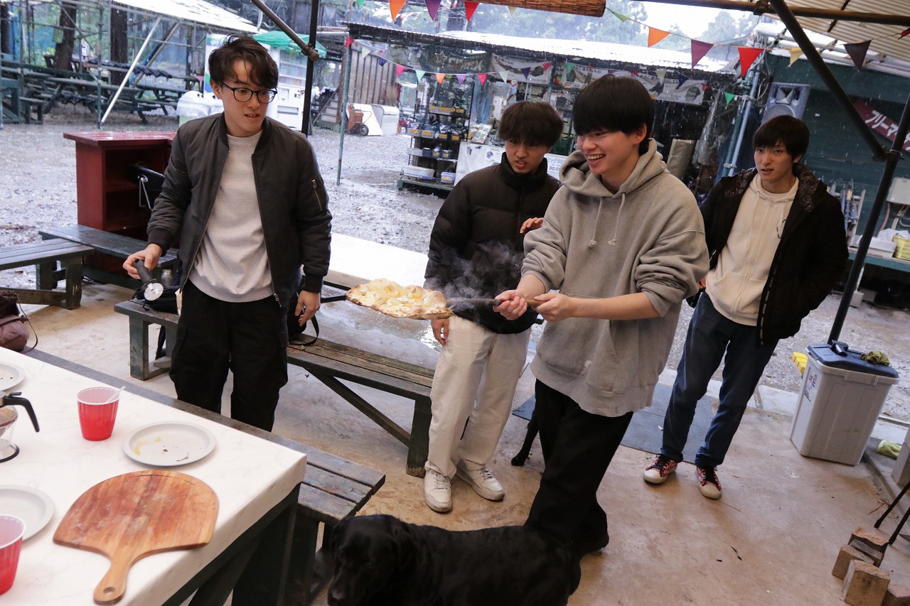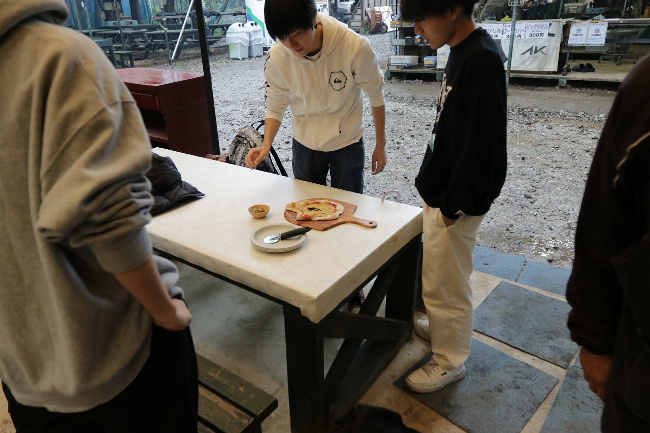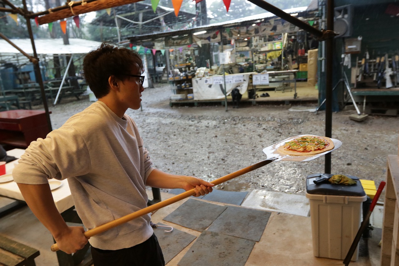 途中とんでもない嵐になりましたが、そんな中作るピザも非日常感ありました笑