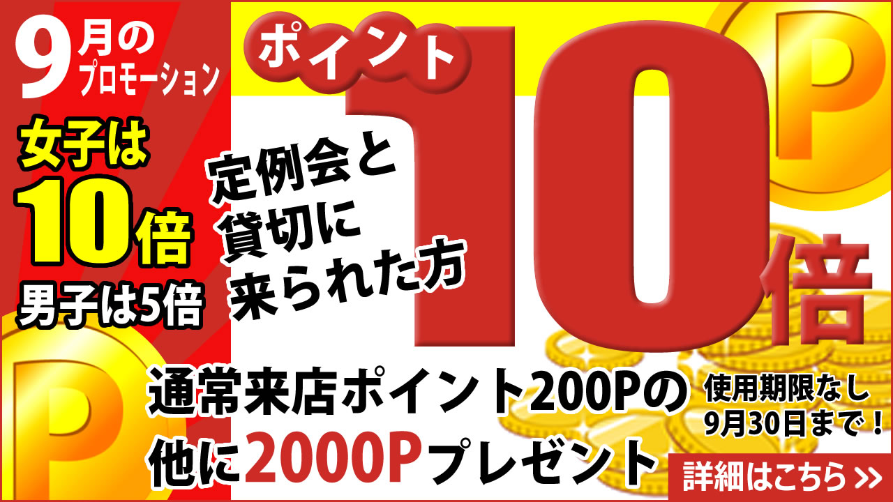 9月中に、定例会及び貸切をご利用された女性の方が対象になります。