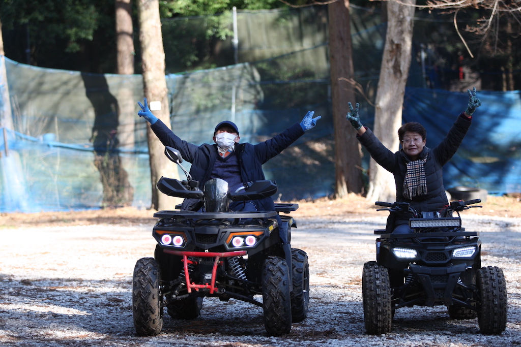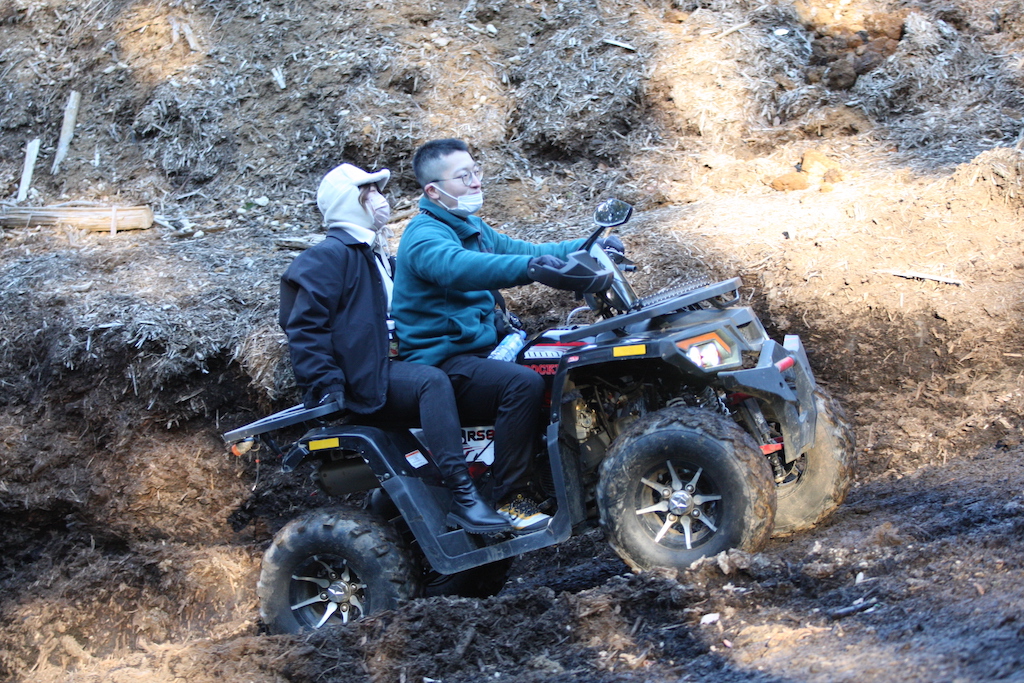 どもども店長おいどんです。 本日は元旦。二組目のバギー体験者は、なんと!遠くは静岡からいらっしゃったご夫婦ですよ。 まずは平地で慣熟走行♬ お聞きしてみたら、なんと、特に目的地もなく旅... -