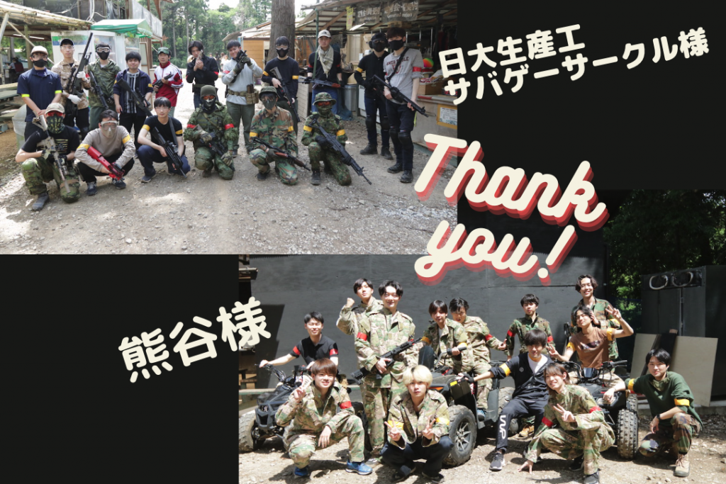 サバゲーCIMAX貸切 A : 日大生産工サバゲーサークル様 B: 熊谷様