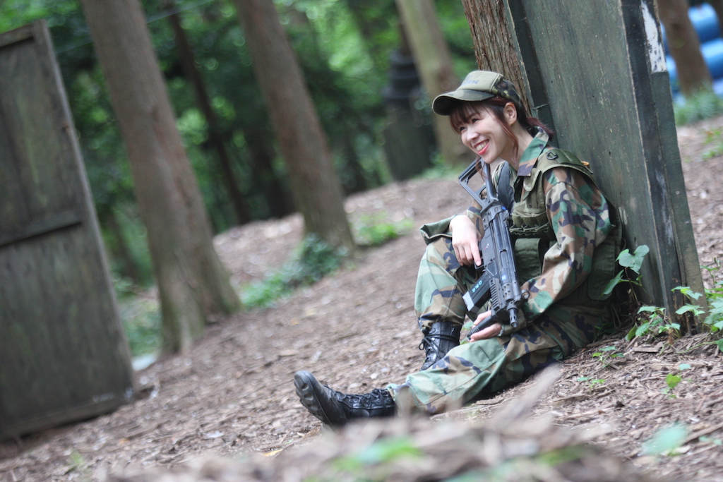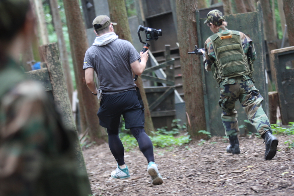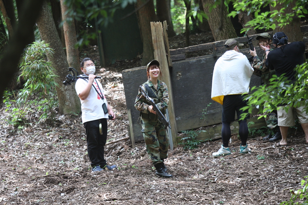 サバゲー女子2名が役者さんになって、山の中を走ったり、
